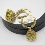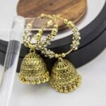 Explore our exquisite collection featuring Antique Jhumka Earrings, a perfect blend of tradition and elegance. Our Jewellery line boasts Ethnic Golden pieces, each crafted with meticulous detail, embodying a timeless Traditional Style. Elevate your Women’s Fashion with these trendy and versatile accessories, ideal for weddings and special occasions.