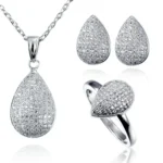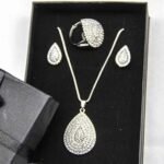 - Zircon Jewellery Set for Women – Silver pandent, stud earrings with ring.