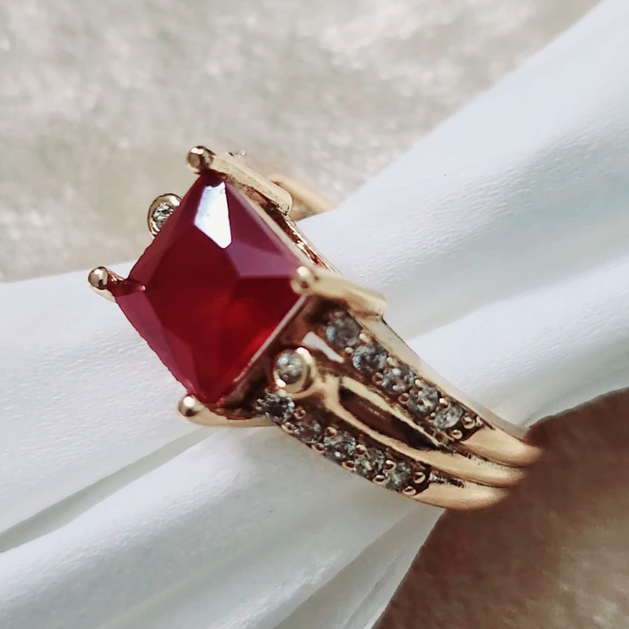 S14 – Square Diamond Zircon Ring For Woman Fashion Wedding Engagement Party No tarnish Jewelry with Red Pink Black Golden Stone