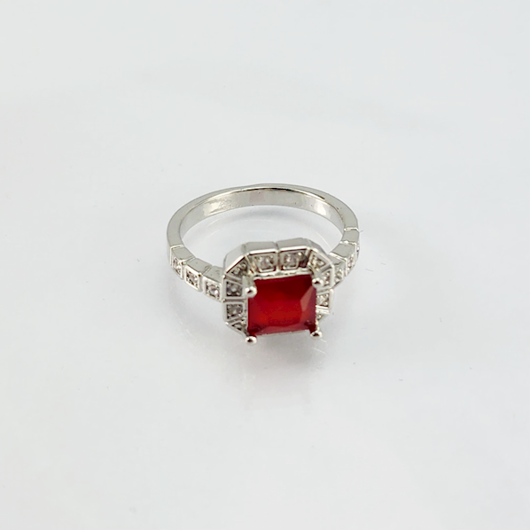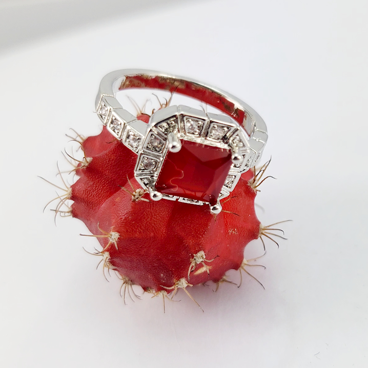 S9 – Silver Sterling Zircon Red Diamond Ring For Woman Light Weight Eid Engagement Party Wedding Jewelry